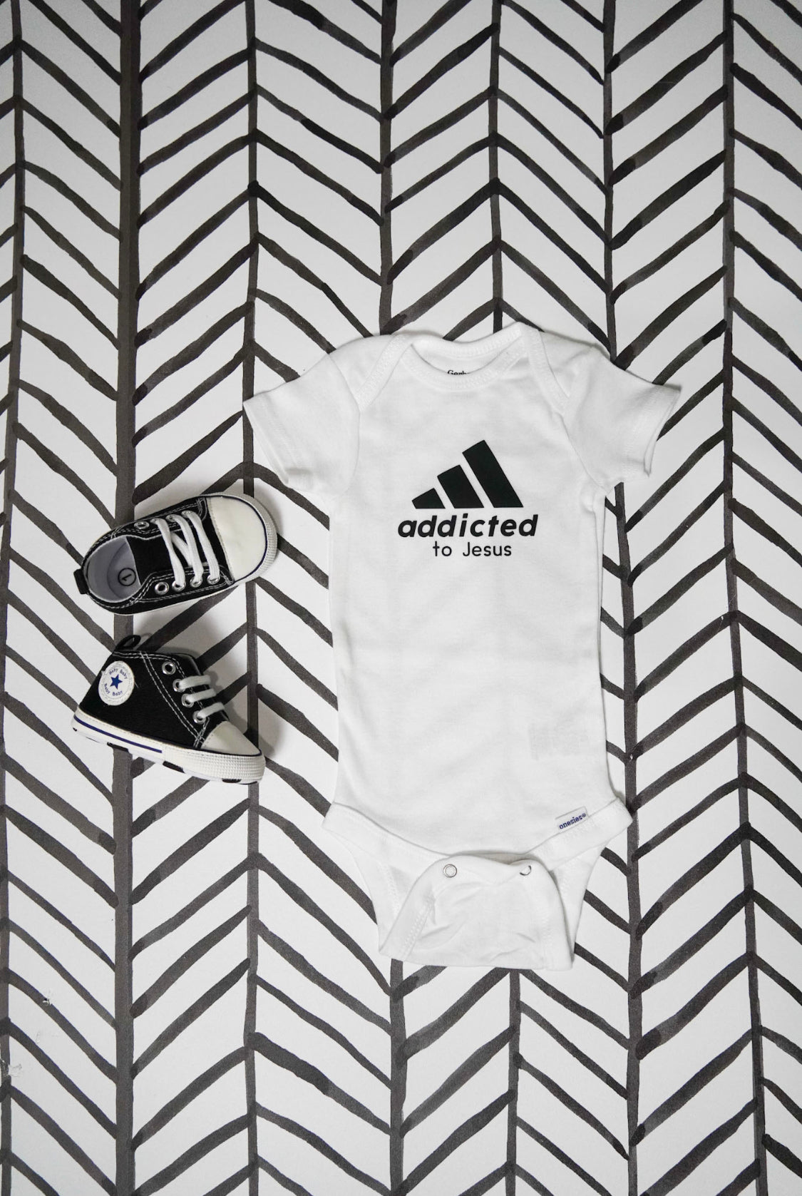 The Addicted to Jesus onesies are printed on super soft 100% cotton onesies in a little place in North Texas!