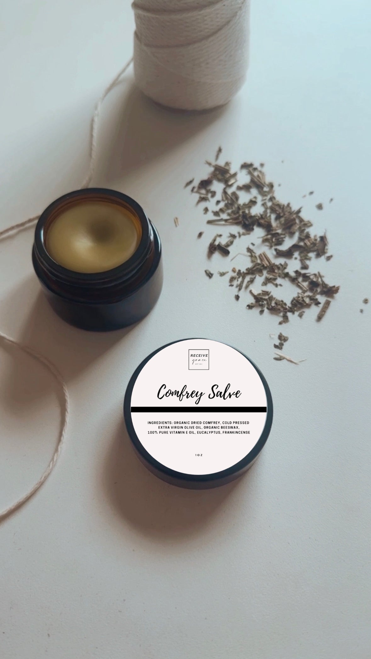 Our Comfrey Salve comes in an amber glass 1oz container.