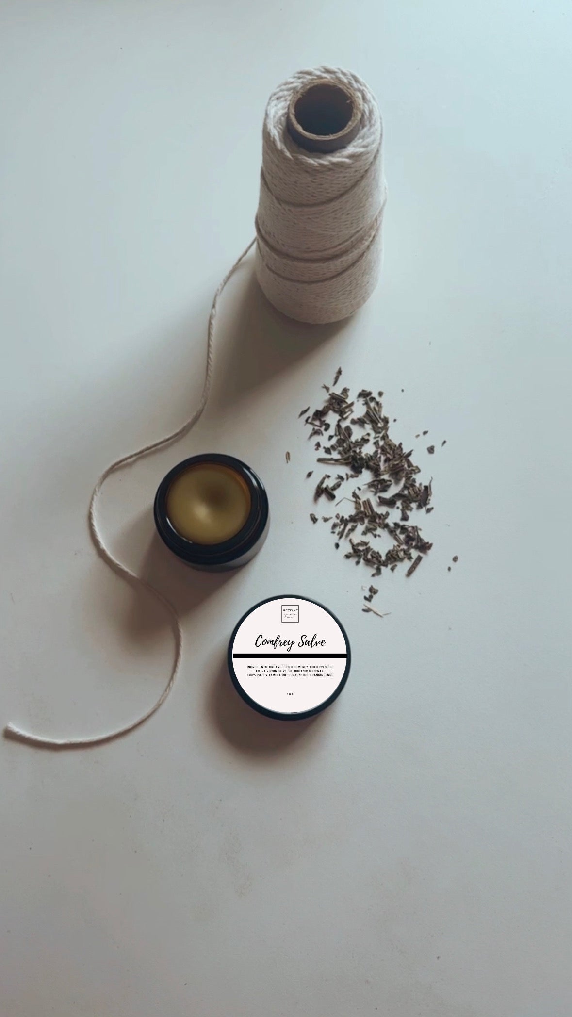 Dried Comfrey, Extra Virgin Olive Oil, Beeswax, Eucalyptus