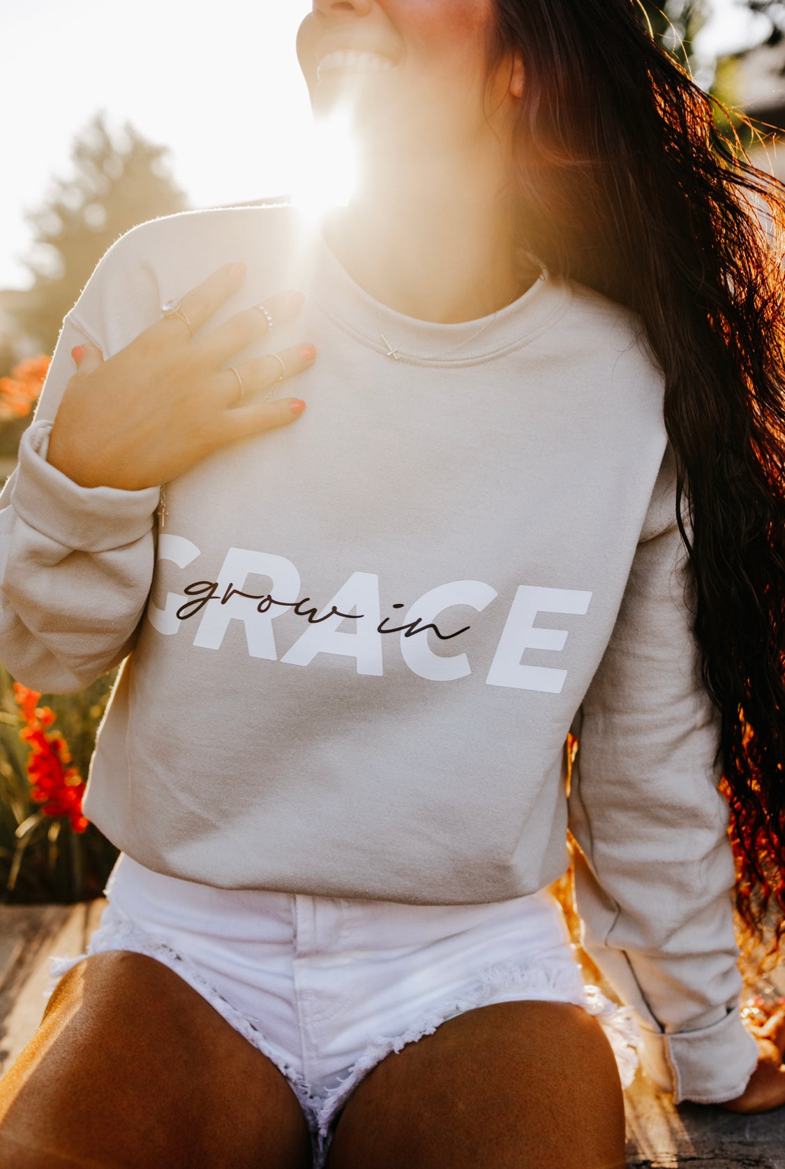 The Grow in Grace sweaters are printed on super soft 50% cotton + 50% polyester unisex sweaters in a little place in North Texas! These unisex sweaters are true to size!