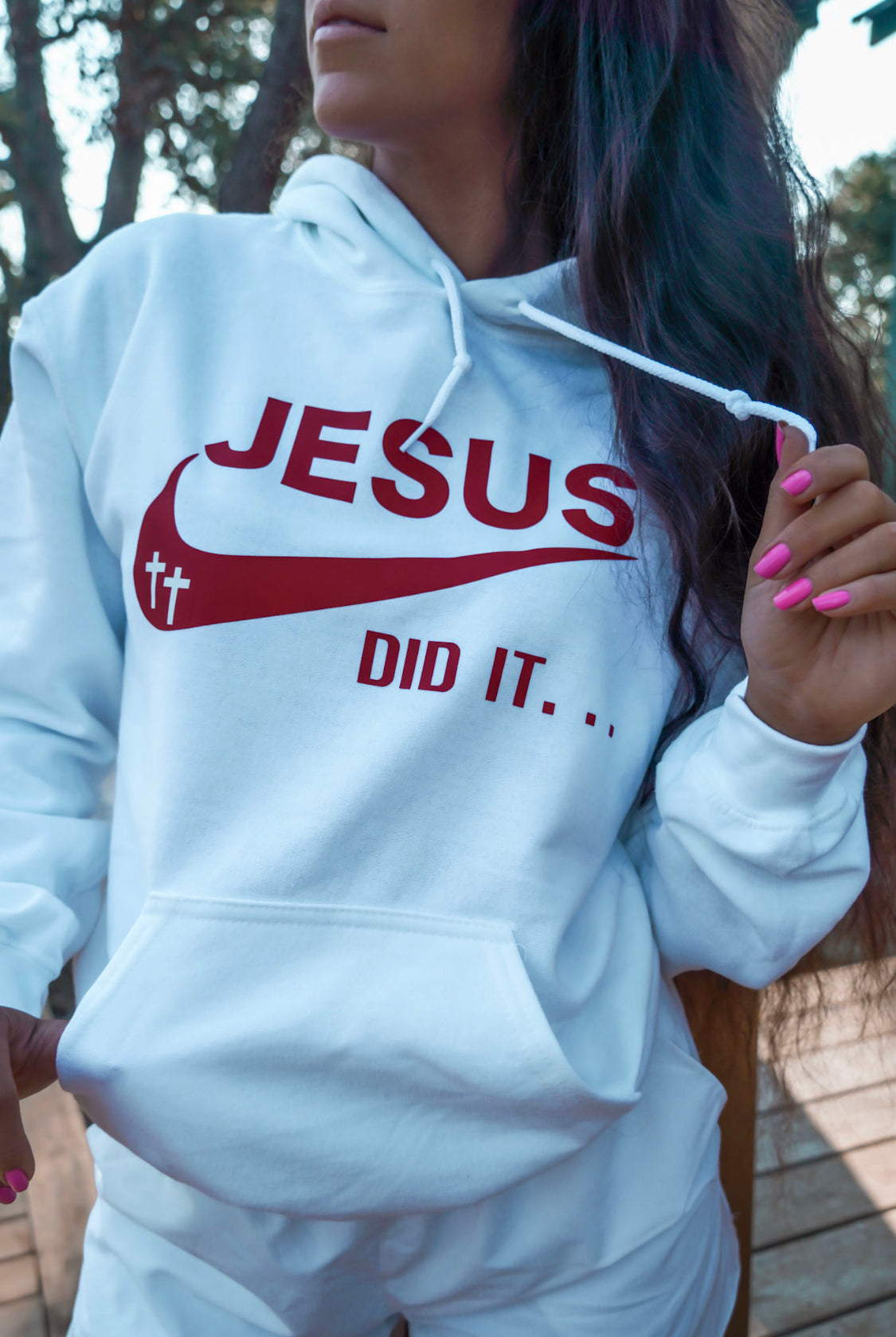 These Jesus Did It hoodies are printed on super soft 50% cotton + 50% polyester unisex hoodies in a little place in North Texas!