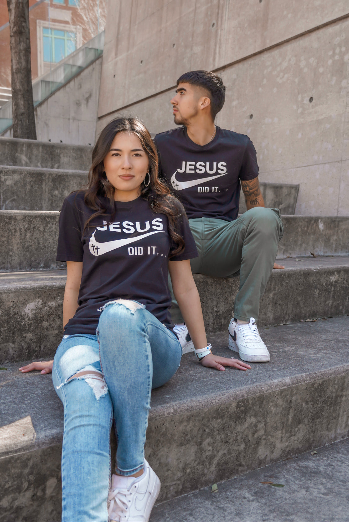 These Jesus Did It shirts are printed on super soft 50% cotton + 50% polyester unisex shirts in a little place in North Texas!
