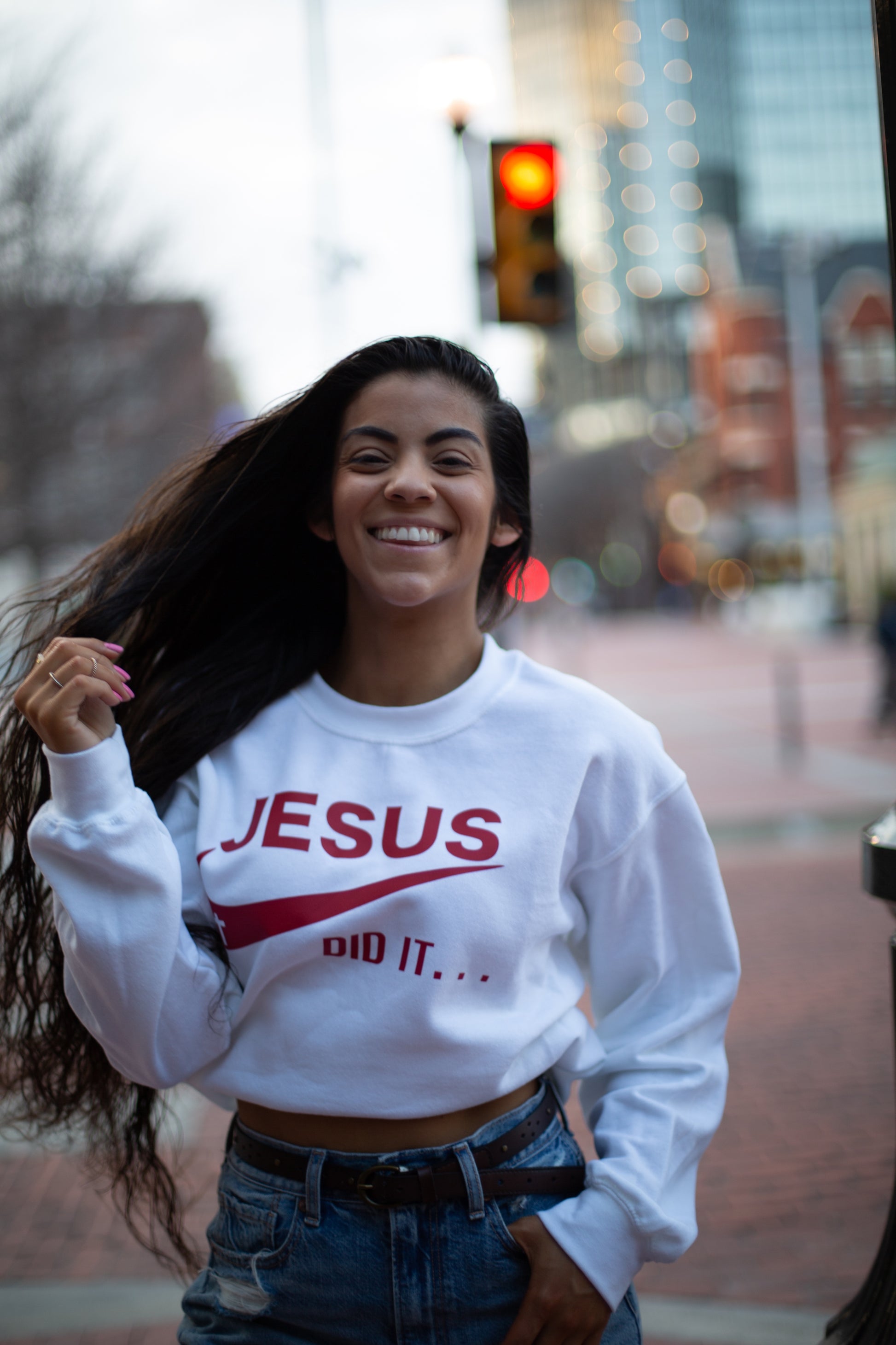 These Jesus Did It sweaters are printed on super soft 50% cotton + 50% polyester unisex sweaters in a little place in North Texas!