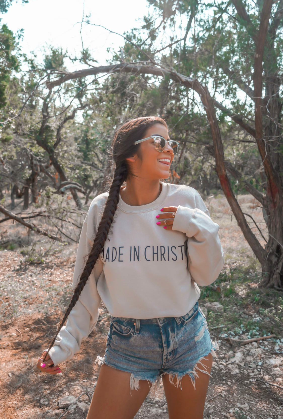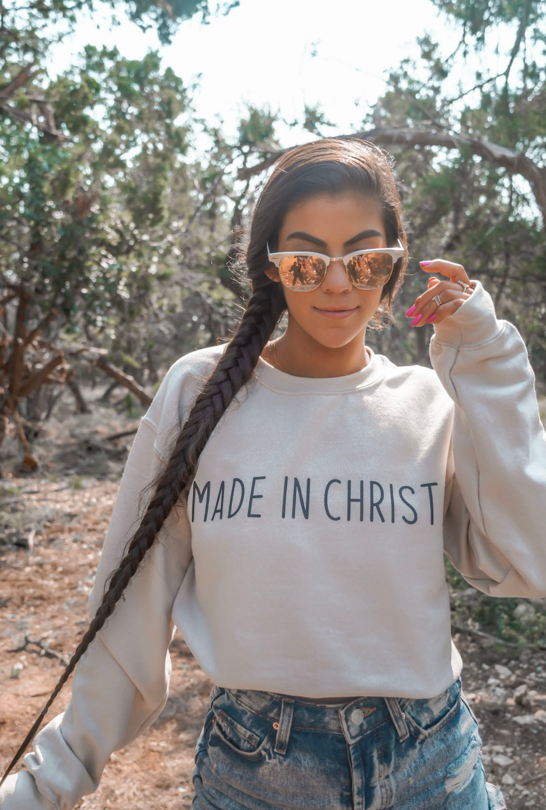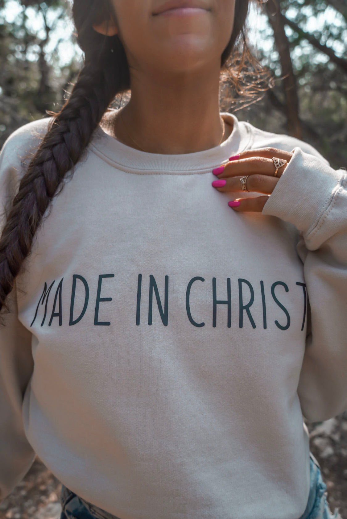 These Made in Christ sweaters are printed on super soft 50% cotton + 50% polyester unisex sweaters in a little place in North Texas!
