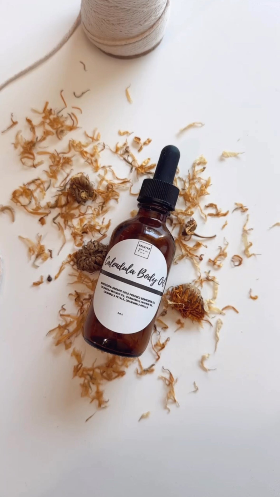 Calendula infused oil has anti-inflammatory and antimicrobial properties, which can help soothe and heal irritated, acne prone or damaged skin.