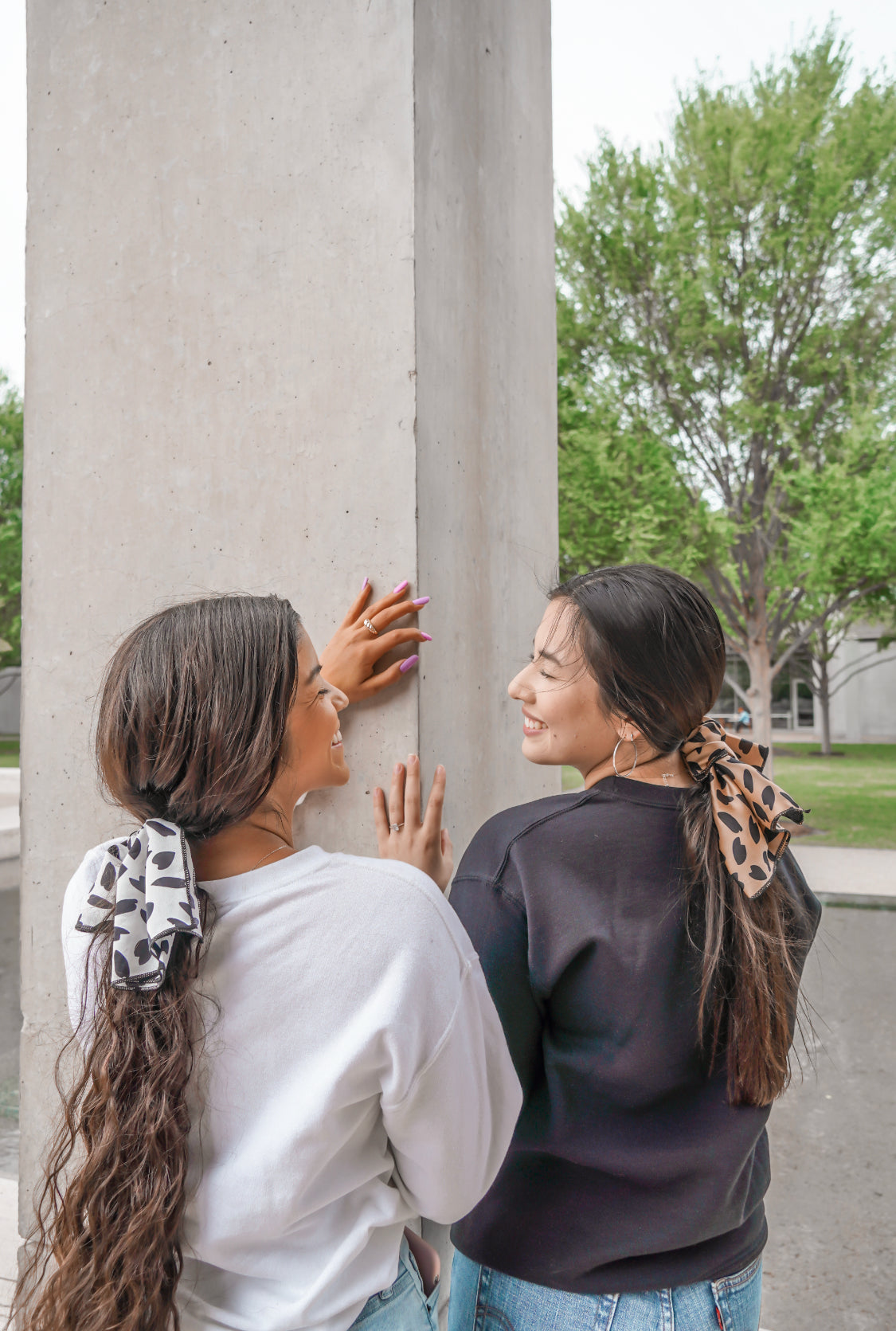 The beautiful leopard and white leopard headscarfs are made out soft linen material! Have fun experimenting and playing with the versatility of the animal print headscarf. Adorn your hair and style it as a headband or a hair tie, or even wrap it around your favorite handbag.